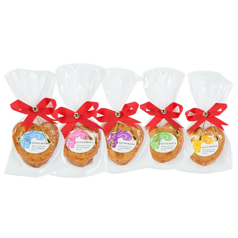 キュートなハート型さつま揚げにゴールドのリボンが華やかな一品です。