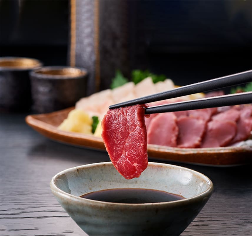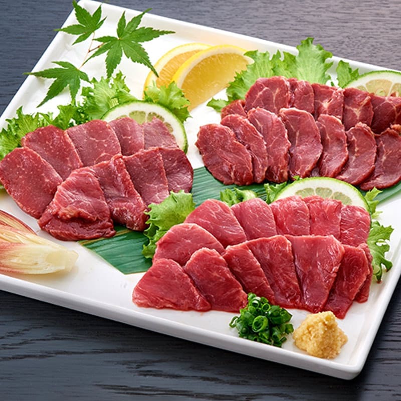 | 原材料名 | 馬刺し(特上赤身)(カナダ・ウルグアイ・アルゼンチン) 【醤油】醤油(国内製造)、砂糖、米発酵調味料/カラメル色素、酒精、増粘剤(キサンタンガム)、甘味料(ステビア)、(一部に大豆・小麦を含む) |