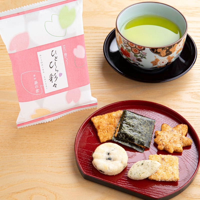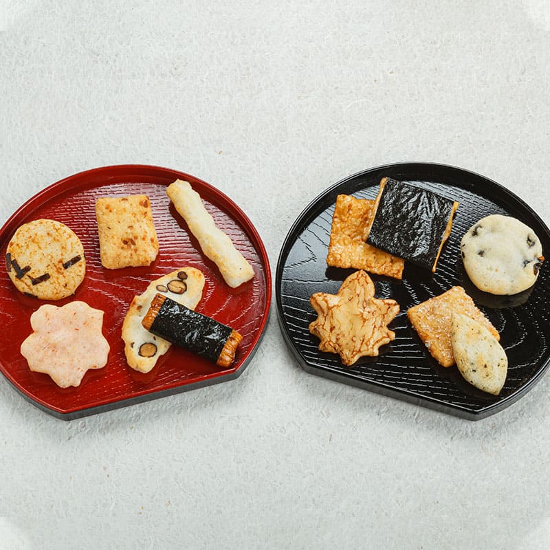 海苔巻、揚げおかき、ざらめ、そして黒豆や海老などの風味を大切に生かしました。