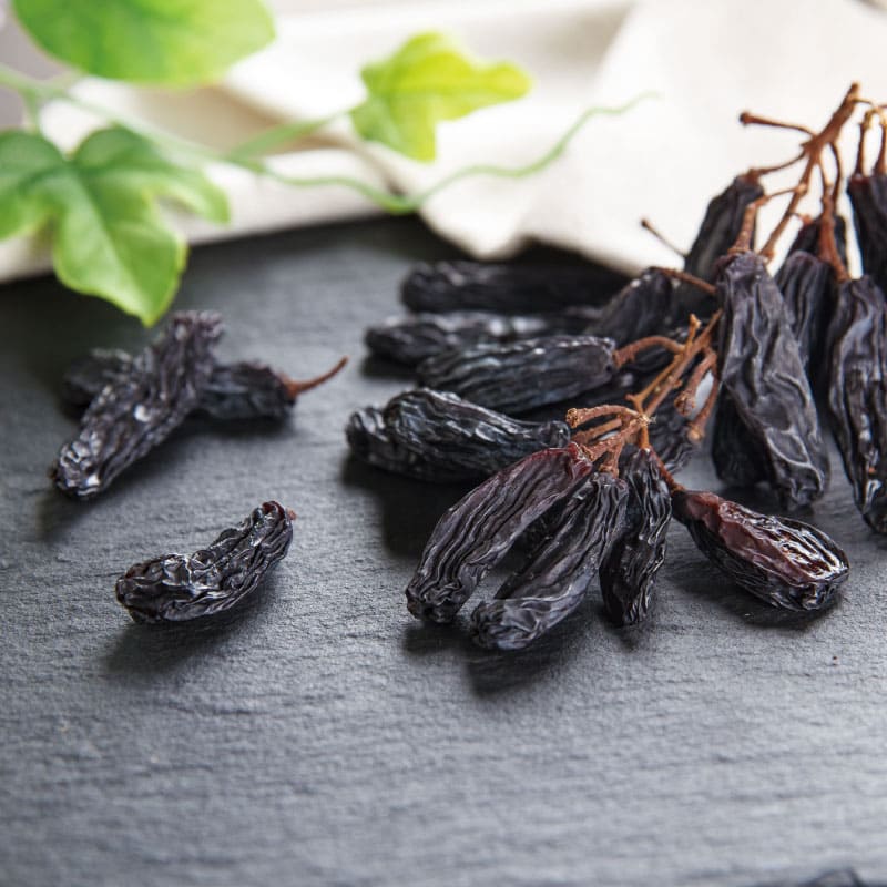 「フレッシュぶどう」 の新鮮な風味を残しながらも、「レーズン」の凝縮された甘味も合わせ持つ特別な乾燥果実です。