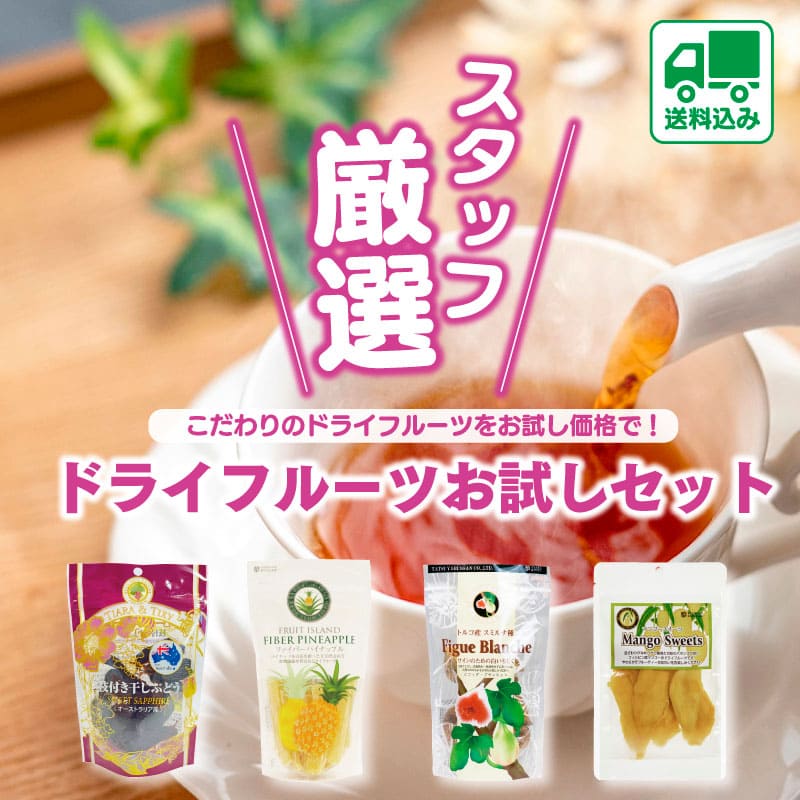 【セット内容】枝付き干しぶどう80g、ファイバーパイナップル、フィグ・ブランシュ 100g、マンゴースイーツ×各1パック