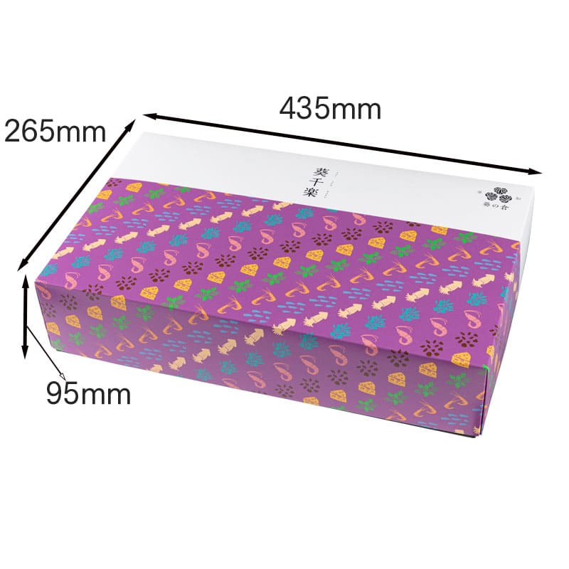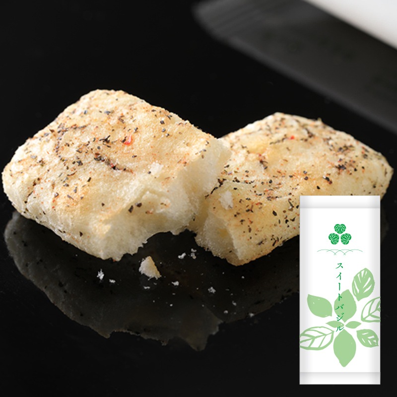 | 原材料名 | もち米(国産)、うるち米(国産)、もち粉(国産米)、植物油脂、アーモンド、加工黒糖、食塩、シーズニング(サワークリームオニオン味)、チーズパウダー、シーズニング(オリーブ風ドレッシング味)、シーズニング(バジル味)、糖類(ぶどう糖、砂糖、オリゴ糖)、えび、いか、青のり、甘えび(粉末)、えびエキスパウダー、ミモレットチーズ、パセリ、えびパウダー、粉末醤油、昆布エキス、香辛料/調味料(アミノ酸等)、くん液、香料、乳化剤、酸味料、着色料(カロテン、紅麹)、酸化防止剤(V.E)、(一部に乳成分・小麦・卵・えび・大豆・いか・鶏肉・アーモンドを含む) |