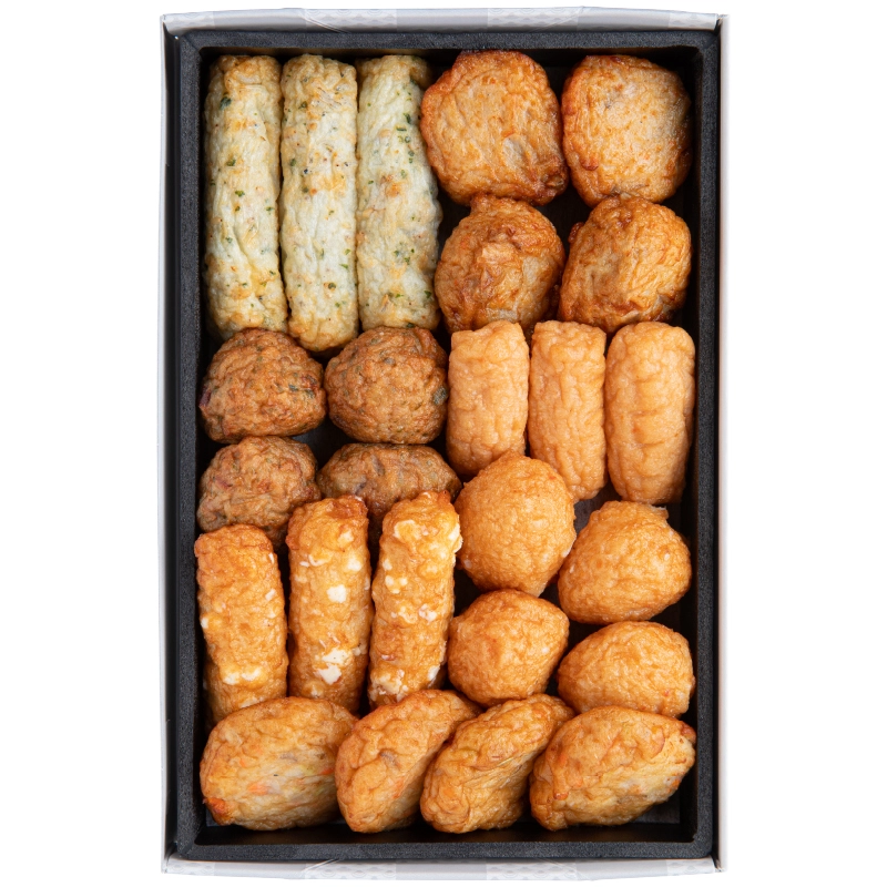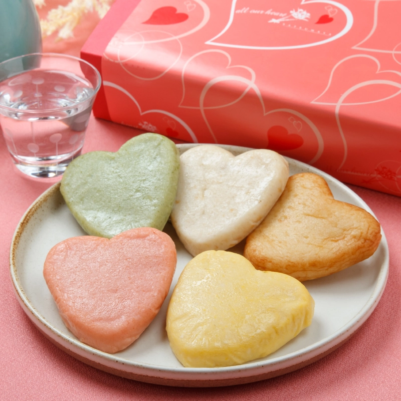 単品はもちろん、チーズ入りさつま揚げとの詰合せやバレンタイン時に数量限定のカラフルなハート詰合せとバラエティ豊かにご用意しております。